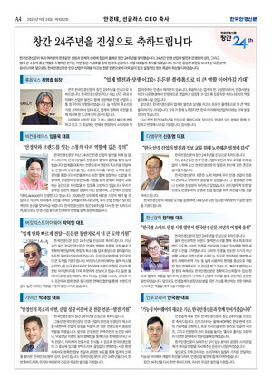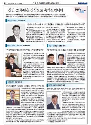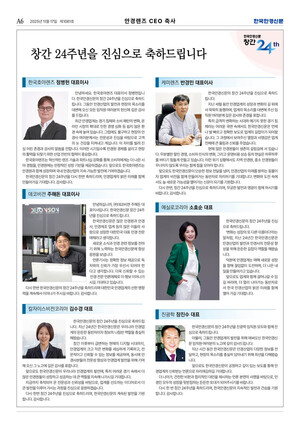 한국안경신문이 독자 여러분의 한결같은 성원과 업계의 신뢰에 힘입어 올해로 창간 24주년을 맞이했습니다. 이번 창간 기념호를 통해 안경렌즈 대표들과 업계 주요 인사들의 축사를 모았습니다.- 한국호야렌즈 정병헌 대표이사안녕하세요. 한국호야렌즈 대표이사 정병헌입니다. 한국안경신문의 창간 24주년을 진심으로 축하드립니다.그동안 안경산업의 발전과 현장의 목소리를 대변해 오신 모든 임직원 여러분의 헌신에 깊은 감사를 드립니다.최근 안경업계는 경기 침체와 소비 패턴의 변화, 온라인 시장의 확대로 인한 경쟁 심화 등 쉽지 않은 환경 속에 놓여 있