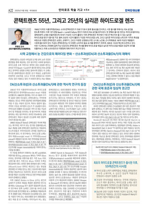 하이드로겔 소재와 실리콘하이드로겔 소재의 상호 보완실리콘 하이드로겔 렌즈가 도입된 지 25년 이상의 시간이 지난 시점에서, 임상에서 눈건강적인 측면에서 선호하는 소재가 되었으며, 다양한 용도의 렌즈가 실리콘 하이드로겔 소재로 만들어지면서 안경사의 처방의 입지도 넓어지고 있다. 반세기 이상 콘택트렌즈의 주요 소재로 사용되었던 하이드로겔 렌즈가 결정적인 결점이 있는 것은 아니며, 여전히 많은 소비자에게 피팅되고 있으며, 임상적으로도 안정적인 성능을 보이고 있는 것 또한 사실이다. 이는 하이드로겔 소재와 실리콘 하이드로겔 소재가 각자의