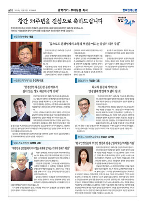 한국안경신문이 독자 여러분의 한결같은 성원과 업계의 신뢰에 힘입어 올해로 창간 24주년을 맞이했습니다. 이번 창간 기념호를 통해 광학기기·부대용품 대표들과 업계 주요 인사들의 축사를 모았습니다. - 신일광학 박진수 대표“앞으로도 안경업계의 소통과 혁신을 이끄는 중심이 되어 주길” 한국안경신문 창간 24주년을 진심으로 축하드립니다.그동안 안경산업의 발전과 안경사들의 전문성 향상을 위해 꾸준히 노력해 온 한국안경신문의 헌신과 열정에 깊이 감사드립니다.최근 몇 년간 안경시장은 온라인과 대형 유통의 확산, 소비 패턴의 변화 속에서 결코 쉽
