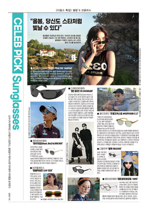 컬러풀한 프레임과 틴트 렌즈, 90년대 감성을 결합한 오벌형 선글라스 등 어떤 룩에도 소장해야 할 필수템, 셀럽들이 착용한 선글라스로 나만의 패션 지수를 높여보자!■ 룩소티카코리아 ‘프라다 PRA19S 1AB5S0’걸그룹 에스파의 카리나가 5집 미니앨범 ‘WHIPLASH’ 티저 영상에서 착용한 프라다 PRA19S 1AB5S0은 랩어라운드 스타일의 선글라스이다. 젊은 소비자에게 선글라스는 자외선으로부터 눈을 보호하는 아이웨어의 역할뿐만 아니라 패션을 완성 시켜주는 포인트 아이템으로 사랑받고 있다.■ 케어링아이웨어 ‘마우이짐(Maui
