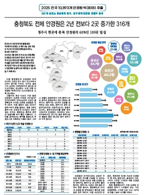 대규모의 다양한 데이터를 활용한 ‘빅데이터 경영’은 고객과 나눈 상호 작용의 역사이자 미래 경쟁력을 좌우하는 중요한 자원이다.2025년 3월 현재 전국 보건소에 등록된 안경원은 총 10,893개소다. 본지가 261개 보건소에 정보공개를 청구해 수집한 자료를 전문가에게 의뢰해 ‘빅데이터’로 재가공한 이유는 한국안경신문 독자들이 시장변화에 능동적으로 대처할 수 있도록 돕기 위해서다. 이중 충청북도의 안경원은 모두 389개. 2년전 조사 당시 314개에서 75개가 증가한 수치다. 인구는 같은 기간 오히려 159만600여 명으로 약 2,4