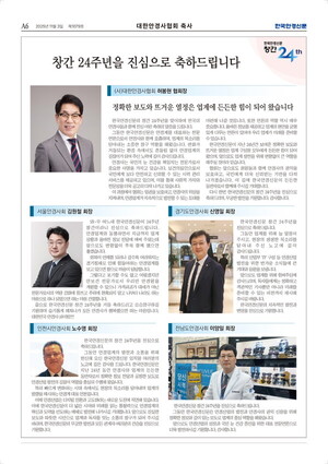 소금과 같은 존재로 용기있는 언론으로 정론의 길을 가겠습니다한국안경신문의 24주년을 축하해 주신 많은 분께 진심 어린 감사의 인사를 전합니다. 지난 24년. 한국안경신문은 단 한 번의 결호 없이 독자와 안경인 제위의 곁을 지켜왔습니다. 돌이켜보건대 참 쉽지 않은 길이었습니다. 때로는 악의적인 시샘에 시달려야 했고, 때로는 현실적인 문제로 유혹에 흔들렸던 것도 사실입니다. 하지만 창간호를 내며 초심으로 다짐했던 정론지의 꿈을 실현하기 위해 넘어지면 일어서고, 다시 넘어지면 또다시 일어서기를 반복해왔습니다. 살이 찢기는 아픔도 견뎌야