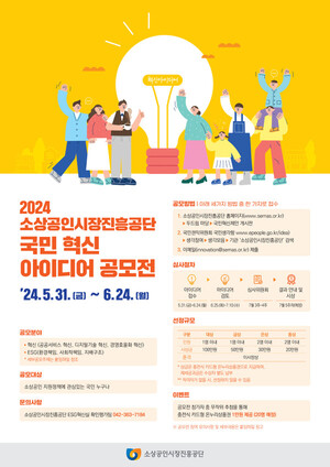 소상공인시장진흥공단(이사장 박성효)이 오는 24일까지 소상공인과 전통시장 활성화를 위한 ’2024 국민 혁신아이디어 공모전‘을 개최한다. 이번 공모전은 국민의 시각에서 소상공인과 전통시장 및 상점가의 활성화를 위한 혁신적인 아이디어를 발굴해 소상공인 지원정책에 반영하기 위해 마련됐다.공모주제는 △혁신(공공서비스 혁신, 디지털 기술 혁신, 경영효율화 혁신)과 △ESG(환경책임, 사회적 책임, 지배구조) 두 가지 주제. 이 중 하나를 선택해 자유롭게 제안할 수 있다.소상공인 지원정책에 관심이 있는 국민 누구나 참가 가능하며, 공단 홈페