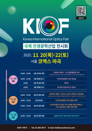 “11월 마곡 코엑스에서 새로운 비전이 선포되길 희망한다” 최근 국회에서 업계와 정부 인사들이 모여 안경산업의 새로운 도약에 대해 논의하고 있다는 한 관계자. 그는 “서울에서 개최되는 전시회의 이점을 적극적으로 활용한다면, 업계 도약의 전기를 마련하게 될 것”이라고 강조한다.오는 11월 20일~22일 서울 마곡 코엑스전시장에서 열리는 ‘2025 국제 안경광학산업 전시회(약칭 KIOF)’가 단순한 비즈니스를 넘어, 안경사와 안경산업의 가치를 새롭게 정립할 최고의 무대로 준비되고 있음이다. 키오프가 주목받는 이유는 단연 접근성이다. 안