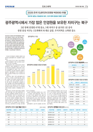 대규모의 다양한 데이터를 활용한 ‘빅데이터 경영’은 고객과 나눈 상호 작용의 역사이자 미래 경쟁력을 좌우하는 중요한 자원이다.2025년 3월 현재 전국 보건소에 등록된 안경원은 총 10,893개소다. 본지가 261개 보건소에 정보공개를 청구해 수집한 자료를 전문가에게 의뢰해 ‘빅데이터’로 재가공한 이유는 한국안경신문 독자들이 시장변화에 능동적으로 대처할 수 있도록 돕기 위해서다. 수도권 못지않게 치열한 경쟁이 펼쳐지던 광주광역시의 안경원이 급감했다. 지난 2년 전 조사 당시 504개였던 광주의 안경원은 이번 조사에서 457개로 47