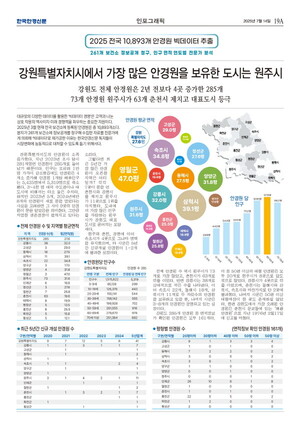 대규모의 다양한 데이터를 활용한 ‘빅데이터 경영’은 고객과 나눈 상호 작용의 역사이자 미래 경쟁력을 좌우하는 중요한 자원이다.2025년 3월 현재 전국 보건소에 등록된 안경원은 총 10,893개소다. 본지가 261개 보건소에 정보공개를 청구해 수집한 자료를 전문가에게 의뢰해 ‘빅데이터’로 재가공한 이유는 한국안경신문 독자들이 시장변화에 능동적으로 대처할 수 있도록 돕기 위해서다. 강원특별자치도의 안경원이 소폭 증가했다. 지난 2023년 조사 당시 281개였던 안경원이 285개로 늘어났기 때문이다. 인구는 오히려 1만 명 가까이 감소