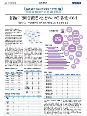 대규모의 다양한 데이터를 활용한 ‘빅데이터 경영’은 고객과 나눈 상호 작용의 역사이자 미래 경쟁력을 좌우하는 중요한 자원이다.2025년 3월 현재 전국 보건소에 등록된 안경원은 총 10,893개소다. 본지가 261개 보건소에 정보공개를 청구해 수집한 자료를 전문가에게 의뢰해 ‘빅데이터’로 재가공한 이유는 한국안경신문 독자들이 시장변화에 능동적으로 대처할 수 있도록 돕기 위해서다. 이중 충청남도의 안경원은 모두 398개. 2년 전 조사 당시 380개에서 18개가 증가한 수치다. 인구는 같은 기간 5,000여 명 증가한 213만 580