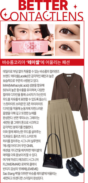 데일리로 부담 없이 착용할 수 있는 바슈롬의 컬러렌즈 브랜드 ‘레이셀(Lacelle)’은 감각적인 패턴과 높은 보습력으로 꾸준히 사랑받고 있다.MAA(Methacrylic acid) 성분을 함유해 55%의 높은 함수율을 유지하며, 다양한 컬러와 디자인을 통해 소비자가 자신만의 무드를 자유롭게 표현할 수 있도록 돕는다.매년 트렌디한 패턴을 기반으로 신제품을 선보이고 있으며, 2025년에는 ▲‘스팟라이트 브라운(Spotlight Brown)’과 ▲‘루미너스 그레이(Luminous Gray)’를 출시했다.‘스팟라이트 브라운’은 3존 하이
