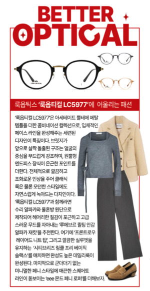 패션은 디테일에서 완성된다. 얼굴 위 작은 아이템 하나로도 전체 스타일을 바꾸는 마법, 바로 아이웨어이다. 『BETTER OPTICAL』 시리즈는 매주 다양한 브랜드의 안경과 선글라스를 중심으로, 그에 어울리는 패션과 뷰티 스타일링을 제안해 독자들의 감각적인 선택을 도왔다. 여기에 콘택트렌즈와 메이크업의 조화를 소개한 『BETTER CONTACTLENS』까지 더해 더 나은 스타일을 위한 가이드북이 되어왔다. 지금까지의 하이라이트를 『BETTER OPTICAL 다시보기: BETTER OPTICAL PARADE』로 만나보자. 룩옵틱스