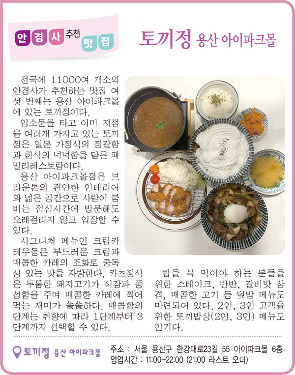 전국에 11000여 개소의 안경사가 추천하는 맛집 여섯 번째는 용산 아이파크몰에 있는 토끼정이다.