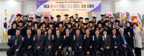 강원일보 CEO 아카데미 원주권 부동산 최고 경영자 과정 수료식이 지난 7일 빌라드아모르에서 열렸다. 황형주 강원일보 원주본부장, 김태훈 원주부시장, 이재용 원주시의장, 박길선 강원특별자치도의회 교육위원장, 손준기·김혁성 시의원, 권오광 도경제진흥원장, 유종우 시노인회장, 원은향 시여성단체협의회장, 이강모 시정자문위원장을 비롯, 각 기수 회장단 등이 참석해 14주간의 교육을 성공적으로 마친 수강생들을 축하했다.