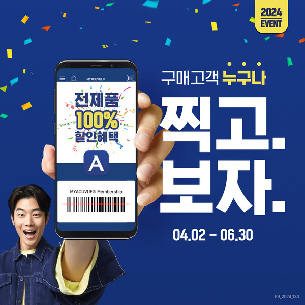 한국존슨앤드존슨 비전 아큐브®가 오는 6월 30일까지 구매고객 누구나 100% 할인 혜택을 받을 수 있는 이벤트를 실시 중이다.