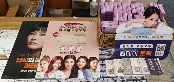 쓰신 분들은 꾸준히 오신다. 실제 착용하신 분들은 ‘왜 권해줬는지 알겠다’라고 하실 정도로 제품력을 인정해주신다. 그리고 국산 제품이라는 점을 계속 어필하니까 ‘우리나라 제품도 이렇게 좋게 만드는 구나’라는 반응이 많다. 우리 매장에서는 시험 착용 렌즈를 아주 잘 활용하는 편인데, 투명렌즈 구매고객에게는 무조건 컬러렌즈를, 컬러렌즈 구매고객에게는 무조건 투명렌즈를 드린다. 왜냐하면 투명렌즈 고객들은 컬러렌즈를 쓰고 싶은 욕망이 있고, 컬러렌즈 고객들은 어느 날 문득 투명렌즈를 착용하고 싶을 때가 있으니까 이런 고객들의 니즈를 생각했다. 클라렌 드리면서 늘 얘기하는 멘트가 몇 개 있다. “맨날 어떻게 밥만 먹어요. 다른 밥도 먹어봐야죠” 하면서 다른 제품을 꼭 써보기를 권장하다 보니까 고객 한 명이 클라렌 투명렌즈도 사고, 클라렌 컬러렌즈도 사신다. 그래서 투명을 두 팩 사면 컬러는 한 팩 정도 사시는 것 같다. 평상시엔 투명을 쓰다가, 주말에 힘 좀 주고 외출하고 싶을 땐 컬러를 쓰고 이런 식으로 뷰티 제품처럼 기분에 따라 다양하게 골라서 쓸 수 있도록 권해드린다.