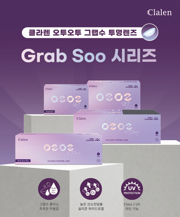 인터로조의 클라렌 오투오투 그랩수 투명렌즈 ‘그랩수(GrabSoo) 시리즈’는 2023년 9월 출시된 ‘클라렌 오투오투 M 그랩수’ 2개입, 6개입과 최근 선보인 ‘클라렌 오투 오투 원데이 그랩수 플러스’ 10개입, 30개입으로 구성돼 있다. 다양한 소비자들의 니즈를 충족할 수 있는 ‘클라렌 오투오투 그랩수 시리즈’로 라인업을 완성했다.