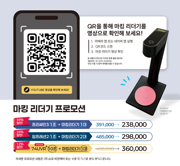 소모 비전케어 관계자는 “이번 마킹 리더기는 단품으로도 구매할 수 있지만 프로모션 기간 이후에 가능하고, 프로모션 기간 동안 할인 혜택을 통해 많은 안경사분이 저렴한 가격에 경험해 보시길 바란다”며 “안경원뿐만 아니라 안과에서도 환자의 렌즈 가입도 확인 등에 유용하게 활용될 수 있을 것”라고 전했다.