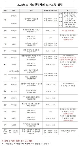 (사)대한안경사협회가 2025년도 전국 시도안경사회 보수교육 일정을 공개했다.