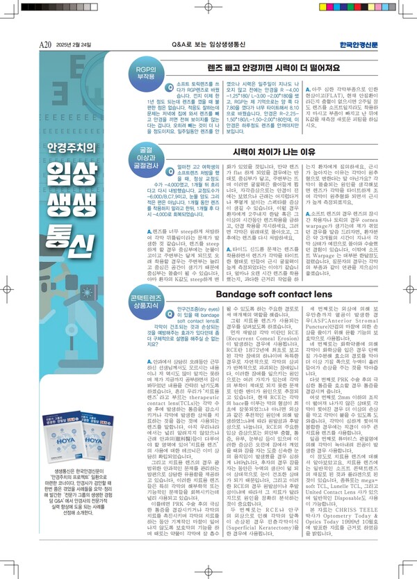 Q. 얼마전 고2 여학생의 소프트렌즈 처방을 했을 때,