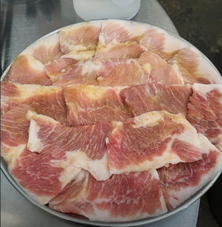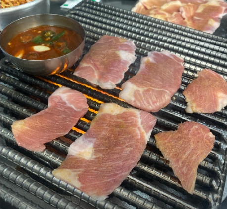 기름기가 적당히 녹아내리며 겉면은 노릇하게 구워지고, 안쪽은 촉촉한 육즙을 머금어 식감과 풍미가 더욱 살아난다.
