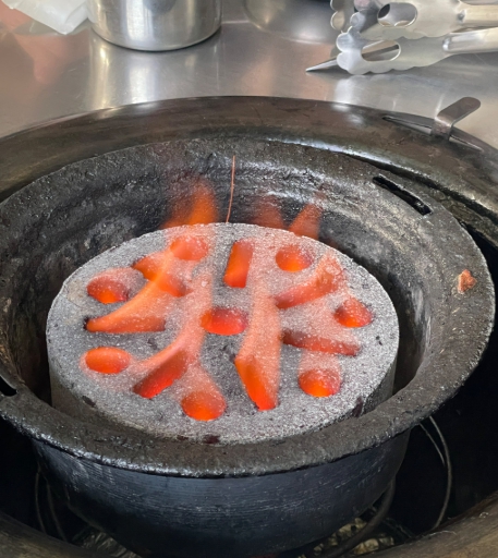 메뉴를 주문하면 연탄 불이 들어오고, ‘사당 모소리’에서만 볼 수 있는 특색 있는 불판이 세팅된다.