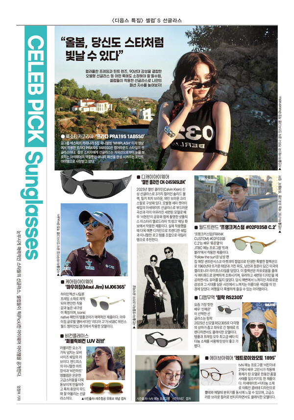 컬러풀한 프레임과 틴트 렌즈, 90년대 감성을 결합한 오벌형 선글라스 등 어떤 룩에도 소장해야 할 필수템, 셀럽들이 착용한 선글라스로 나만의 패션 지수를 높여보자!