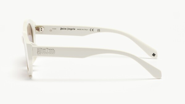 2025년 팜 엔젤스(Palm Angels) 신상 선글라스로 3가지 컬러인 솔리드 블랙, 솔리드 아이보리, 핑크 브라운 크리스탈로 구성돼 있다. 유니크한 레트로 오벌 쉐입의 아세테이트 선글라스로 세미 캣아이 디자인으로 스트릿한 무드의 제품이다. 템플에 미니멀한 팜 엔젤스 시그니처 타이포 로고가 포인트로 슬림한 템플과 가벼운 무게감으로 데일리템으로 추천한다.