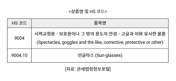 선글라스(HS 코드: 9004.10)는 자외선 차단과 시력 보호 기능을 갖춘 안경 형태의 상품으로, 패션 액세서리의 역할도 겸하고 있다.