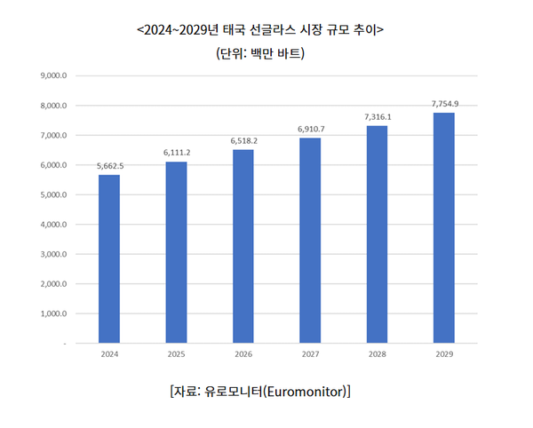 조사기관 유로모니터(Euromonitor)에 따르면, 태국 선글라스 시장은 패션 아이템과 생활필수품으로서의 이중적 성격을 지닌 제품군으로, 최근 몇 년간 뚜렷한 성장세를 보이고 있다.