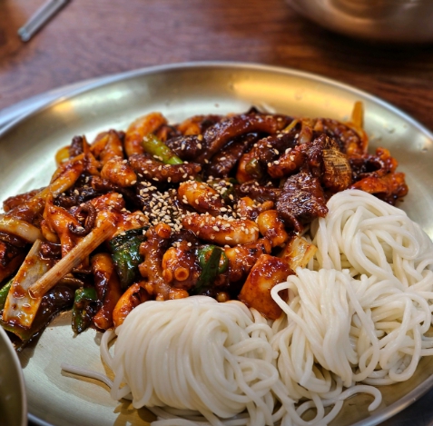 하지만 애성회관의 한우 고명은 두툼하고 커서 겉보기에는 질겨 보일 수 있지만 한입 베어 물면 입안에서 부드럽게 풀어지며, 씹을수록 깊은 감칠맛이 퍼지는 독보적인 식감을 자랑한다.
