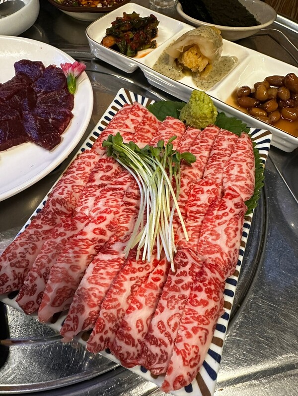 먼저, 대구에서 매일 KTX로 직송되는 당일 도축 한우로 만든 ‘한우 뭉티기’는 찰지고 쫄깃하며 싱싱함이 그대로 살아 있다.
