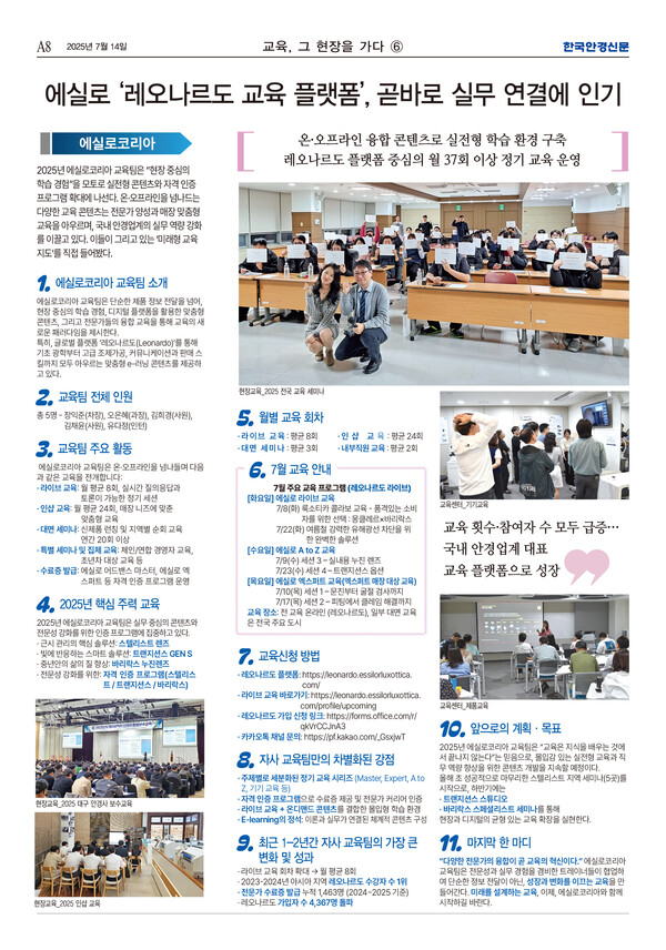2025년 에실로코리아 교육팀은 “교육은 지식을 배우는 것에서 끝나지 않는다”는 믿음으로, 몰입감 있는 실전형 교육과 직무 역량 향상을 위한 콘텐츠 개발을 지속할 예정이다.