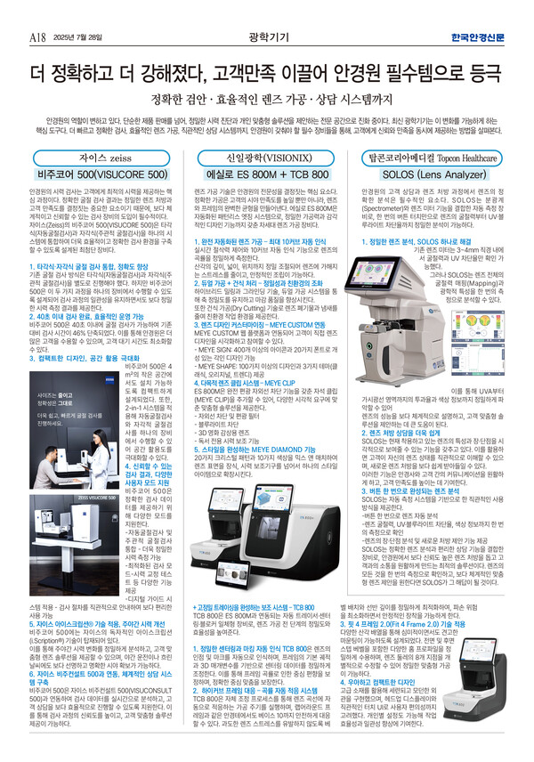 최신 광학기기는 이 변화를 가능하게 하는 핵심 도구다. 더 빠르고 정확한 검사, 효율적인 렌즈 가공, 직관적인 상담 시스템까지.
