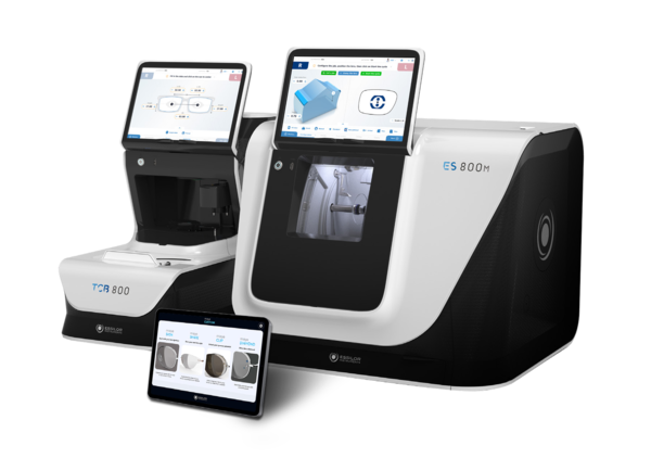 에실로 ES 800M은 자동화된 패턴리스 엣징 시스템으로, 정밀한 가공력과 감각적인 디자인 기능까지 갖춘 차세대 렌즈 가공 장비다.
