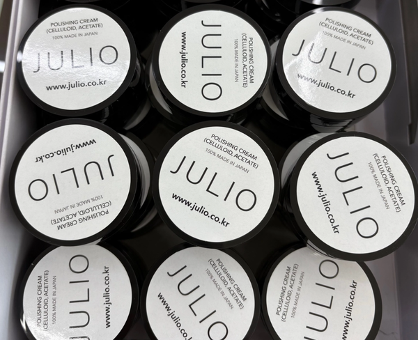 특히 아세테이트와 셀룰로이드 소재는 시간이 지나면서 광택이 떨어지고 미세한 스크래치가 생기기 쉬운 소재인데, ‘줄리오 폴리싱 크림’을 사용하면 이러한 문제를 효과적으로 해결할 수 있다.