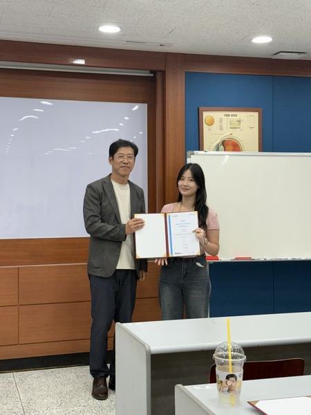 수석으로 합격한 이동민 학생은 “한 학기 동안 성실하게 콘택트렌즈 수업과 실습에 참여한 결과 좋은 성과를 얻게 되어 기쁘다”라며, “해외 대학 학생들과 함께 응시한 시험에서 합격함으로써 콘택트렌즈 전문가로서의 역량을 국제적으로 인정받게 되어 뜻깊다”라고 소감을 밝혔다.