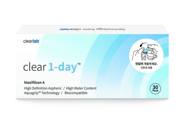 일회용 콘택트렌즈 ‘클리어 원데이(Clear 1day)’는 함수율 58%의 하이옥시필콘 A(Hioxifilcon A) 재질과 아쿠아그립(Aquagrip™) 기술을 통해 장시간 착용해도 편안함을 유지하는 뛰어난 특징을 가지고 있다. 뿐만 아니라 눈 곡선에 맞춘 비구면 디자인으로 깨끗하고 선명한 시야를 제공한다. 아쿠아그립(Aquagrip™) 기술은 습윤인자를 렌즈에 함유시켜 빠져나가지 않고 지속적인 습윤작용을 도움으로써 하루종일 편안한 착용감을 유지시켜 주며, 비구면 렌즈 디자인은 상(像)의 왜곡 현상을 교정할 수 있는 비구면 독자적인 비구면 디자인을 적용하여 하루종일 선명하고 깨끗한 시야를 제공한다. 사용자의 라이프스타일에 맞춰 30개입과 경제적인 90개입 두 가지 옵션을 제공한다.