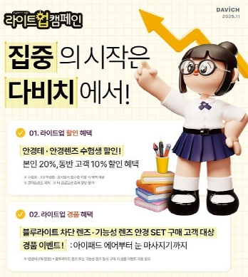 다비치안경이 11월 Light Up 프로모션을 진행한다고 밝혔다. 이번 프로모션을 통해 다양한 할인 혜택과 경품을 증정할 예정이다.