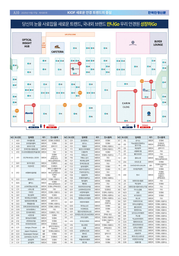 또 안경사의 날 기념식은 물론 다양한 학술행사까지 병행되며 안경사와 안경원의 가치를 대내외에 알릴 절호의 기회로 평가받고 있다. 이에 본지는 참가가 확정된 기업과 부스 배치도, 부대행사 일정 등을 정리한다.