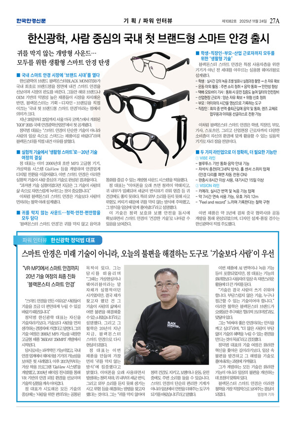 정덕범 대표는 “스마트 안경이 단순한 기술이 아니라 사람의 일상 속으로 스며드는 제품이길 바랐다”라며 블랙몬스터를 직접 내건 이유를 밝혔다.