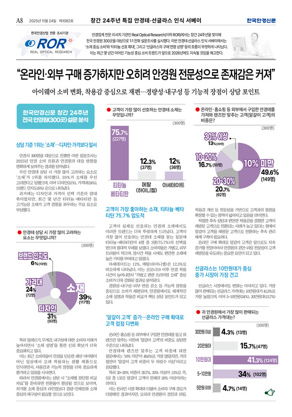 안경사 300명을 대상으로 진행한 이번 설문조사는 2025년 안경 소비 흐름과 안경원의 대응 방향을 명확하게 보여주는 결과를 담아냈다.